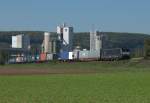 Schweizer Zucker AG, Zuckerfabrik Aarberg, Kampagne 2025: Akiem 189 101 + Akiem 189 102 (geschleppt) + 33 (?) Eaos/Eas, Zug 69404 Islikon-Aarberg, Zufuhr von Leerwagen für den Rübenverlad, Kallnach, 27. September 2025.