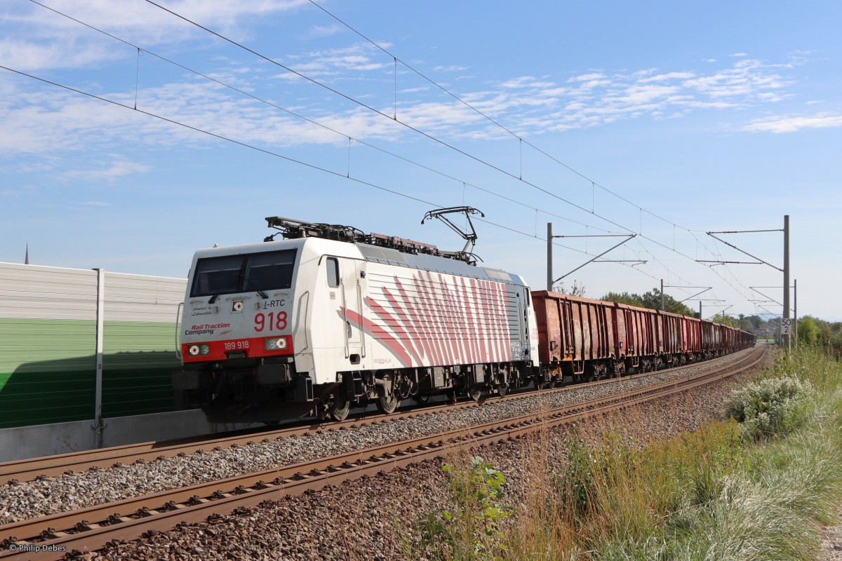 189 918-8 (Lokomotion) mit einem Güterzug in Ostermünchen, 12. Oktober 2023