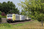 SBBCI 189 992 schleppt ein KLV und ein abgebügelter XLoad-Vectron durch Angeren am 24 Oktober 2024. Leider wird der offenbarer Füsspfad rechts verschwinden wegen der Ausbau der A15 Autobahn.