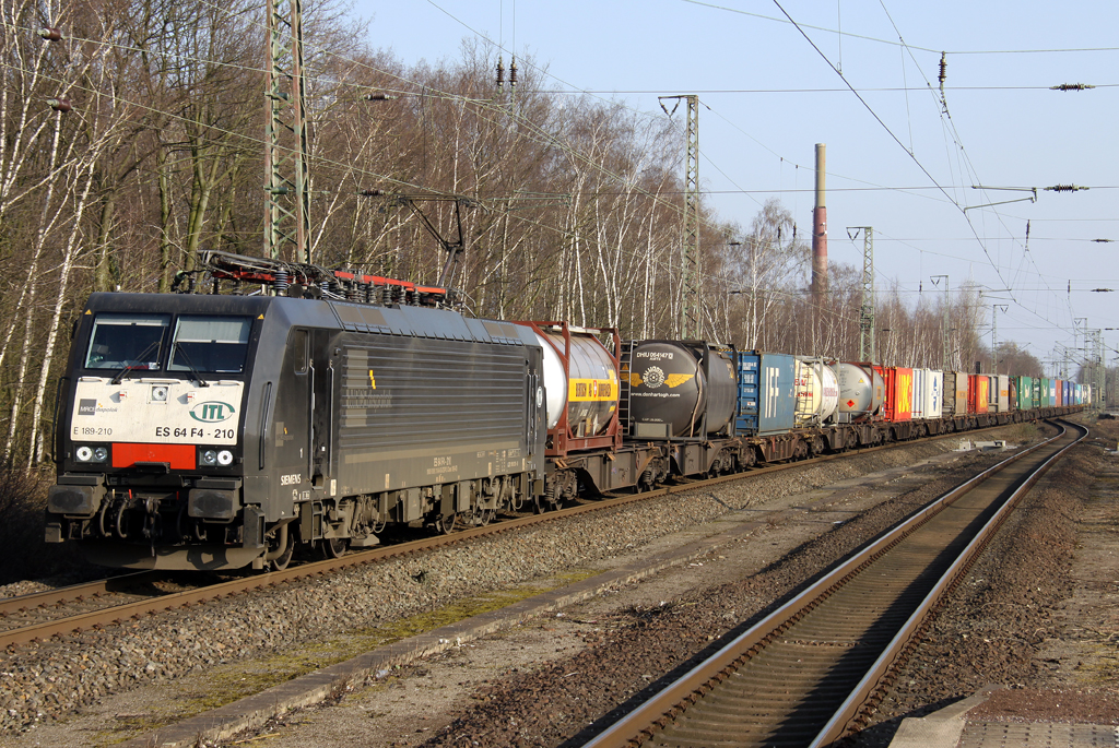 Die 189 210 der ITL zieht einen Containerzug durch Dinslaken am 23.03.2012