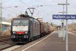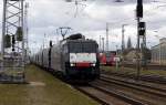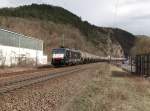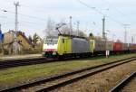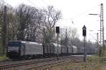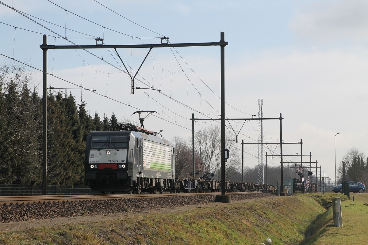 189 285 (ES 64 F4 – 285) der MRCE Dispolok mit Güterzug 51401 Blerick-Maasvlakte West der Rurtahlbahn bei Deurne am 25-2-2015.