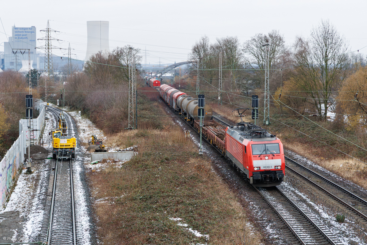 189 064-9 mit einem Güterzug am 20. Januar 2019 bei Diedersdorf.