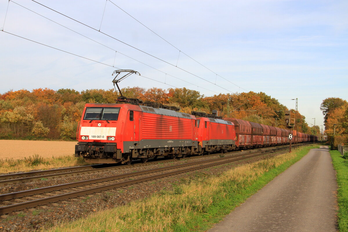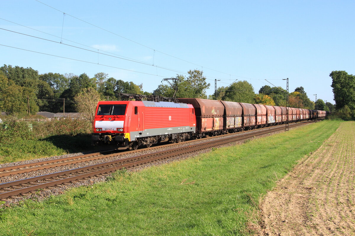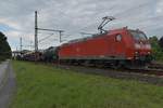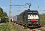 Die Elektrolokomotive 189 082-1 zog Anfang Mai 2021 einen gemischten Güterzug durch Lintorf.
