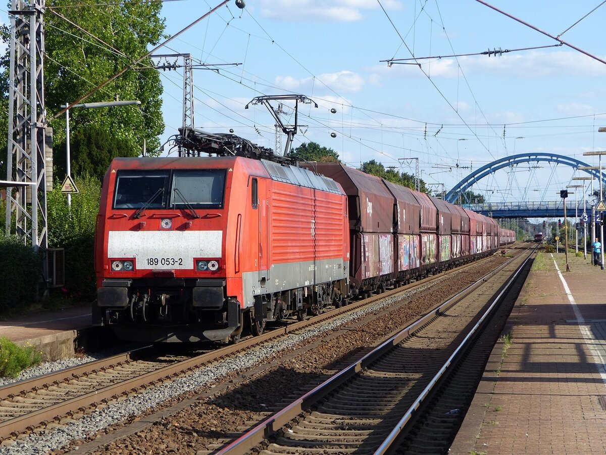 189 053 mit Kohle-Leerpark nach NL in Salzbergen, 01.09.2022