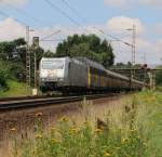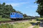 DB Cargo 189 022 mit nur z. T. ausgelasteten Containerzug in Richtung Hannover (Gandesbergen, 31.07.2020).