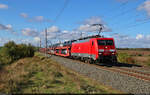 Autotransportzug mit 189 019-3 (Siemens ES64F4) unterwegs bei Ovelgünne Richtung Magdeburg-Sudenburg.