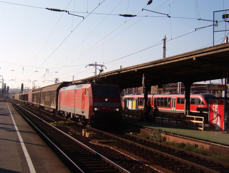 Dieses Bild zeigt einen Güterzug (wer häts gedacht) im Bahnhof Erfurt. Er wird von einer Lok der BR 189 gezogen.