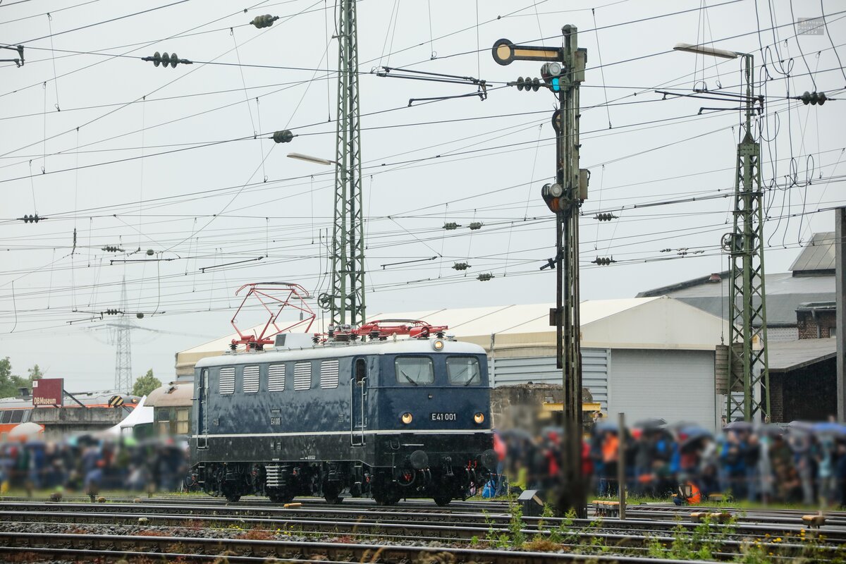 Portrait von E41 001, als diese am Nachmittag des 22.06.2019 an der Fahrzeugparade des Sommerfestes vom DB Museum in Koblenz Lützel teilnahm.