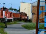 DR-Elektrolok 242 151 und zwei weitere Fahrzeuge verwandter Baureihen am 28.05.2005 beim TEV Weimar.