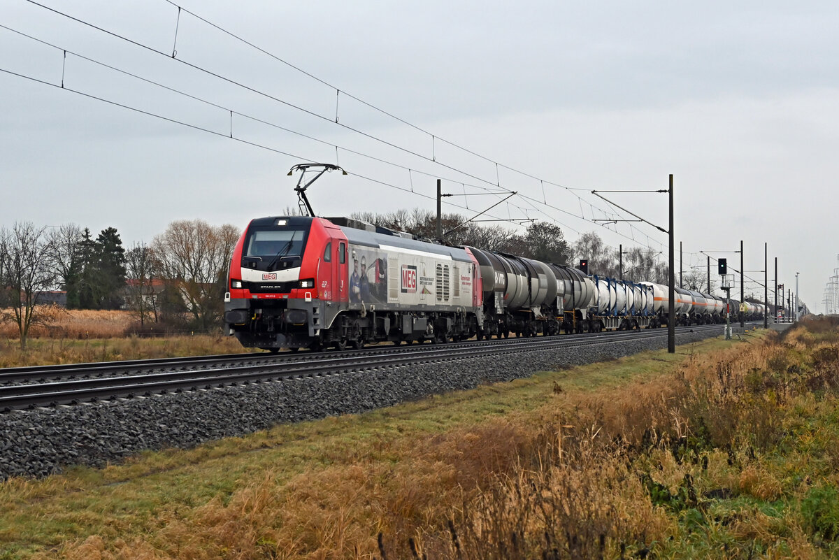 MEG - Mitteldeutsche Eisenbahn GmbH, Schkopau [D] mit "145 043-6" [NVR-Nummer: 91 80 6145 043-6 D-DB] mit Zementstaubzug (leer) Richtung Industrieübergabe Berlin Nordost am 22.10.19 Durchfahrt Bf. Berlin Hphenschönhausen.