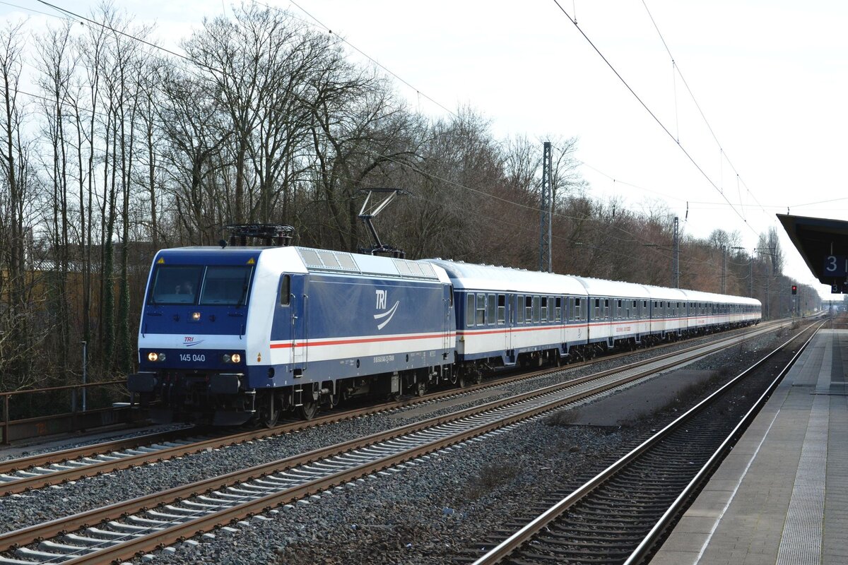 Am verregneten 12 Februar 2026 schiebt TRI 145 097 der RB 37 nach Krefeld Hbf durch Kaarst-Broicherseite und wird vom offenbarer Stelle fotografiert. Dieser Himbeerroter Farbgebung ist eine kleiner Witz von TRI; die DB 145er haben diese Farben nie getragen. Leonardus Schrijvers