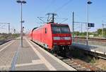 146 027 der Elbe-Saale-Bahn (DB Regio Südost) als RE 16315 (RE30) nach Halle(Saale)Hbf steht in seinem Startbahnhof Magdeburg Hbf auf Gleis 9.