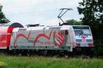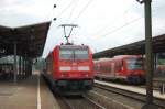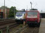 Diesel trifft Strom: 246 001-2 (Derzeit Stromerzeuger für den Science Express) und 146 235-7 in Freiburg. 20.07.09