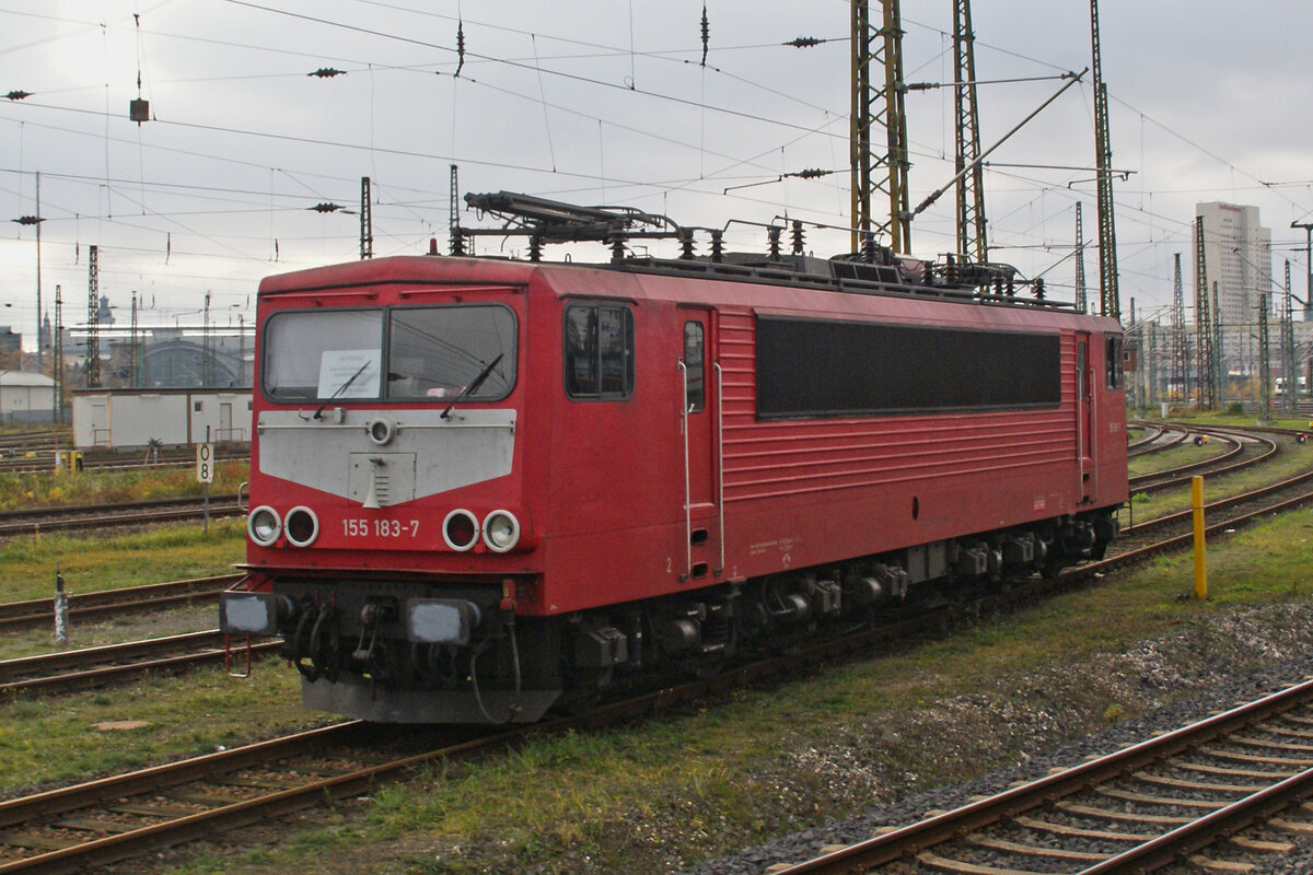 Hier zusehen ist 155 183 am 22.11.23 abgestellt im Gleisvorfeld des Leipziger Hauptbahnhofes. Fotografiert wurde das ganze aus einem Übersetzfenster des RE 6.