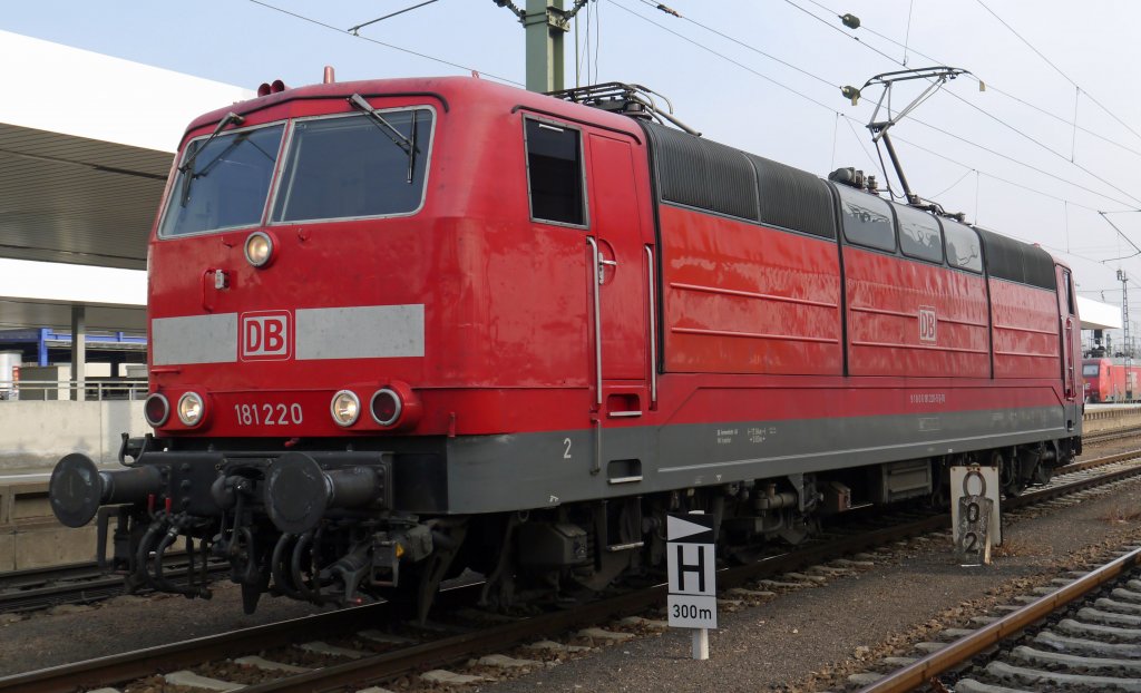 181 220 fährt rückwärts wieder aus dem Mannheimer Hbf raus. (08.02.12)