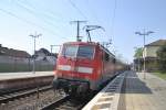 181 220 fährt rückwärts wieder aus dem Mannheimer Hbf raus.