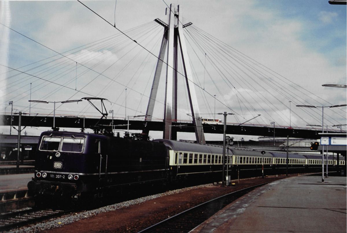 E-Lok 181 215-5 (DB) auf den Gleisen des alten Stuttgarter Hauptbahnhofs bei einer Veranstaltung des BDEF (31.05.1984)