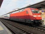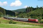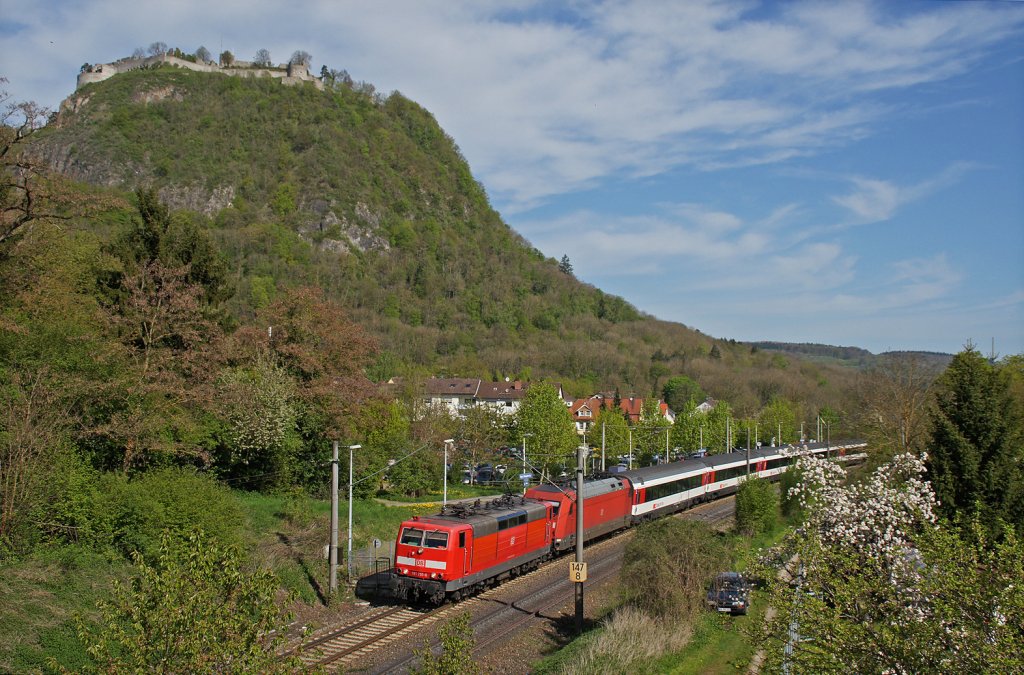 181 210-6 + 101 056-0 (kalt) mit IC 181 Frankfurt(Main)Hbf - Zürich HB am Fuße des Hohentwiels in Singen. 28.04.12