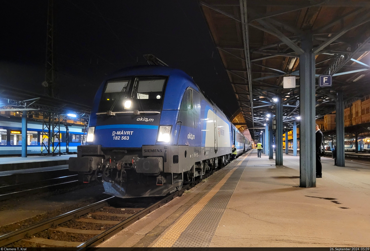 DB Regio 182 019-0 mit dem Flughafen Express (FEX) am 06.12.2025 in Berlin Ostkreuz. Jahrzehntelange hatte der Kreuzungsbahnhof den saloppen Spitznamen  Rostkreuz , seiner rostigen und maroden Stahlbrücken wegen. Heute ist die Station ein moderner Glas-Stahl-Betonbunker.