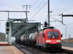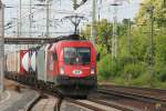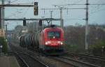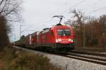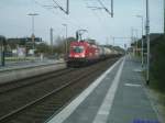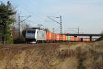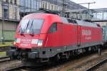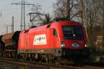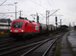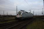 Mit einem langen GZ mit Stahlplatten fuhr die 1116 238-5 der ITL am 26.11.2009 durch den Magdeburger Hbf.