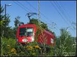 Hennigsdorf b. Berlin 5.8.2025. Wegen der Baustellen auf der Strecke Berlin-Hamburg wurde Juli 2025 der RE 2 von Cottbus nach Wismar planmäßig nach Hennigsdorf umgeleitet. Das soll noch vsstö. bis Februar 2026 gehen. So kommen erstmalig seit vielen Jahren wieder lok-bespannte Doppelstockzüge hierher.Am 5.8.25 stand 180 022 am Regio-Bahnsteig abfahrbereit nach Cottbus. Auf dem Nebengleis war Telent 442 630 als RB20 von Brkenwerder eingetroffen.