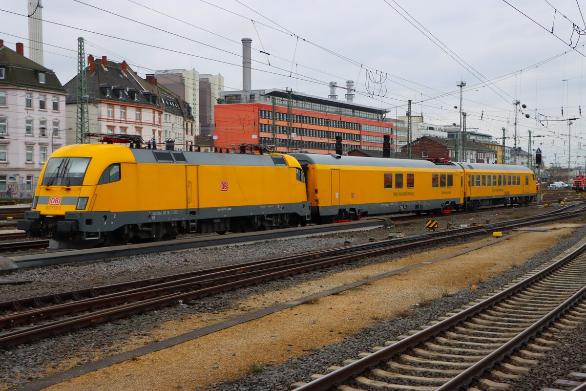 Appenweier - 18. Februar 2025 : DB Netz Messzug geschieben von der 182 536 in Richtung Basel unterwegs.