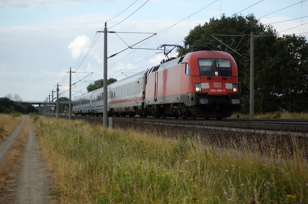 Heute war am EC 340 die 182 006-7, aber hatte wegen Böschungsbrand zw. Rangsdorf und Zossen 40min Verspätung. 26.07.2010