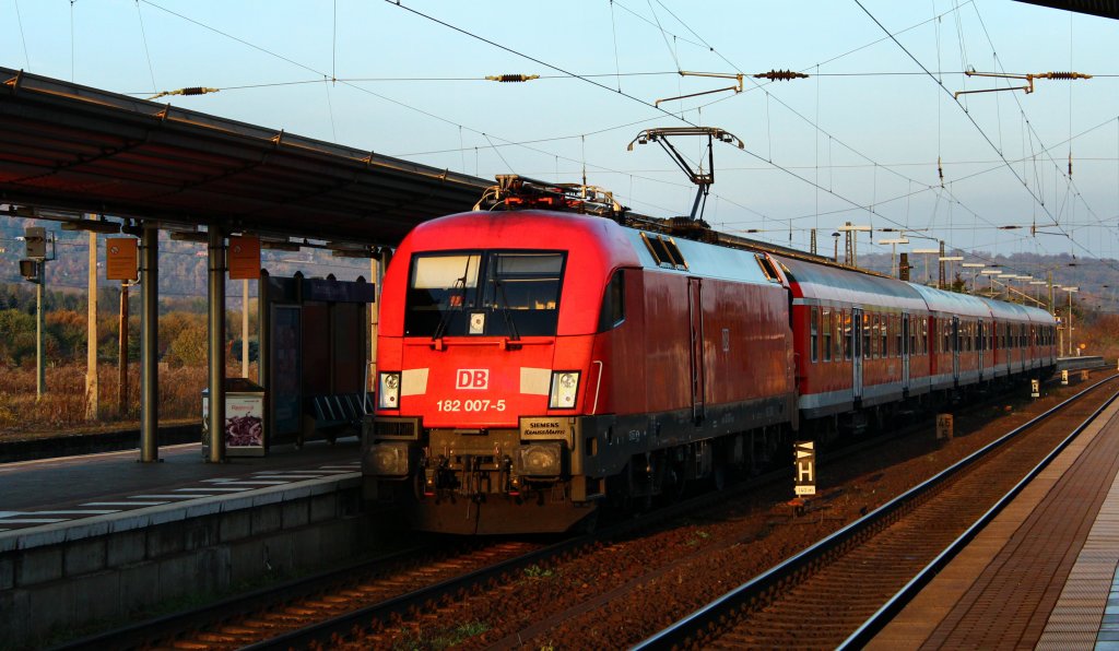 Die Sonne stand schon tief als 182 007-5 mit RB 16326 nach Eisenach am 28.10.11 in Naumburg(Saale) Hbf einfuhr.