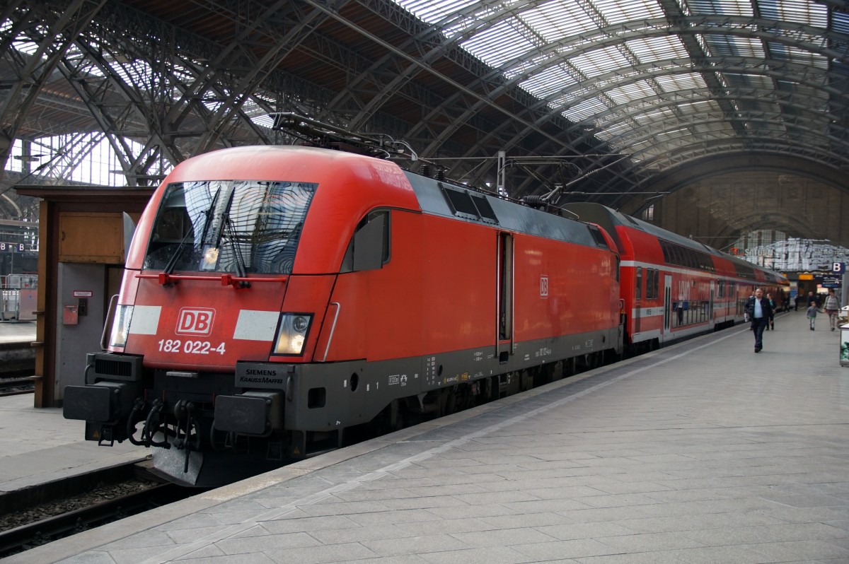 182 022-4 mit ihrem RE nach Dresden im Leipziger Hbf am 04.10.2014