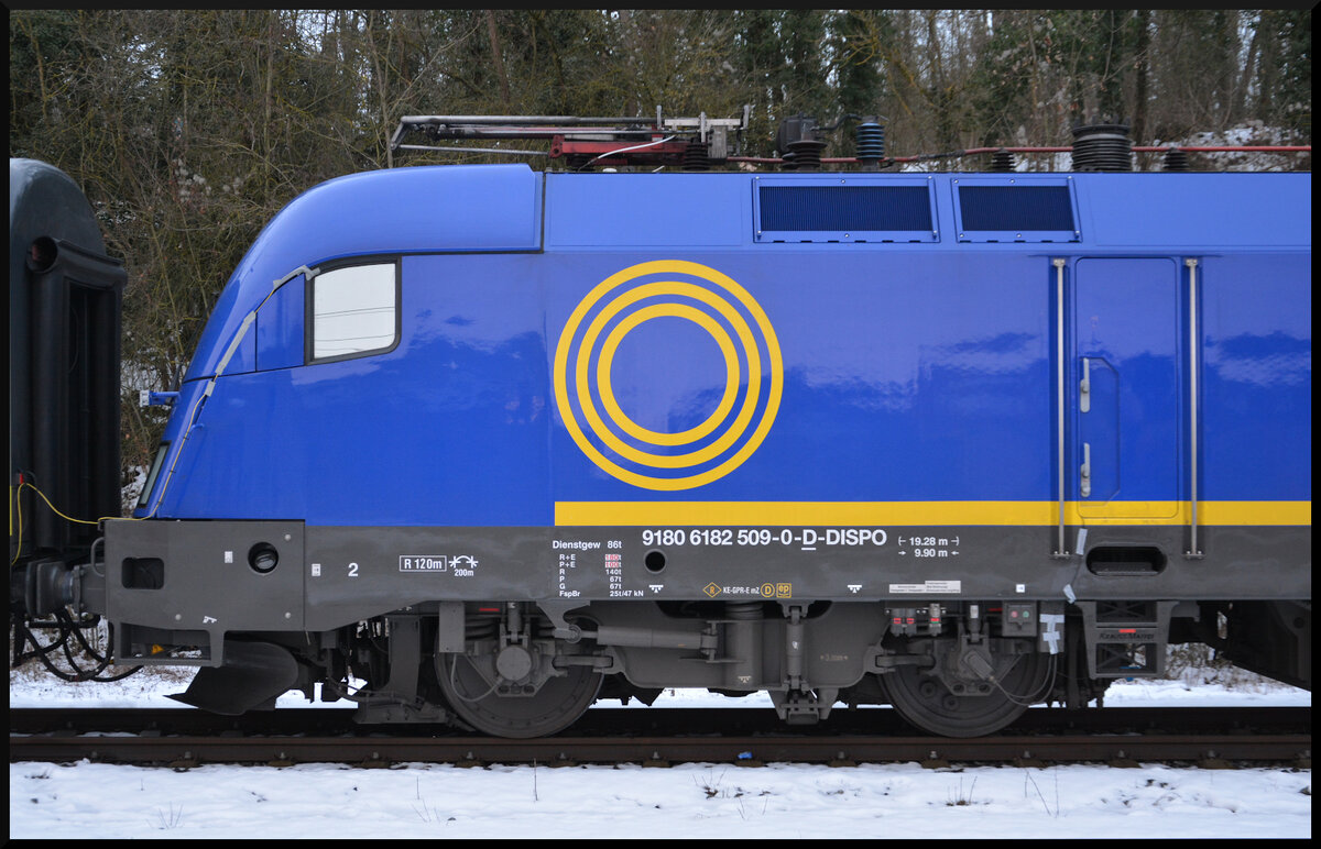 Am 31.01.2026 stand die ehemalige Siemens Dispolok, jetzt Beacon Rail Capital Europe, ES 64 U2-009 (NVR: 9180 6182 509-0-D-DISPO) mit einem Testzug im Bahnhof Kitzingen kalt abgestellt auf Gleis 5. Matthias Kümmel