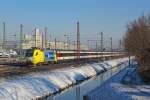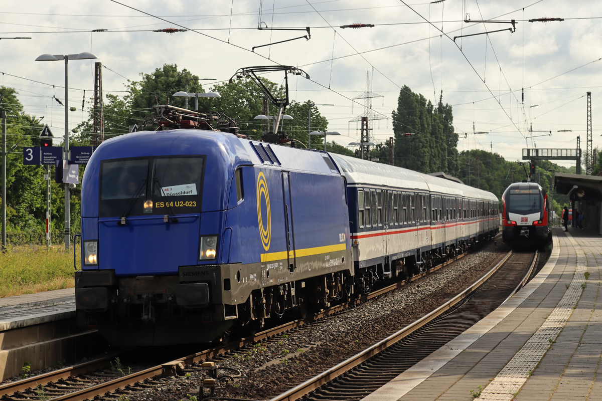 Im Hintergrund warteten am 11. Mai 2024 eine DB Cargo 187 und ein ES 64 U2 mit einem Messzug auf neue Aufgaben.