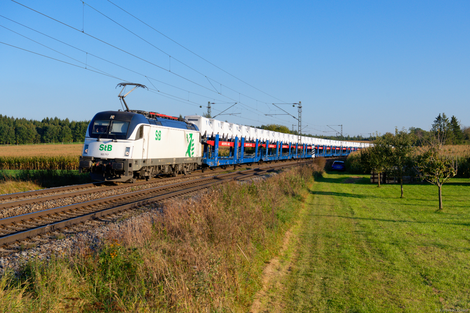 Durchfahrt Stb 183 217 durch den Bahnhof Dabendorf in Richtung Berlin am 03. Oktober 2025.