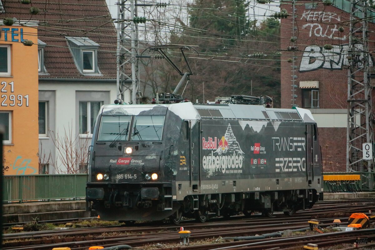 185 614-5  TRANSFER ERZBERG  erzbergrodeo Rail Cargo Group bei der Einfahrt in Köln Hbf, Dezember 2025.