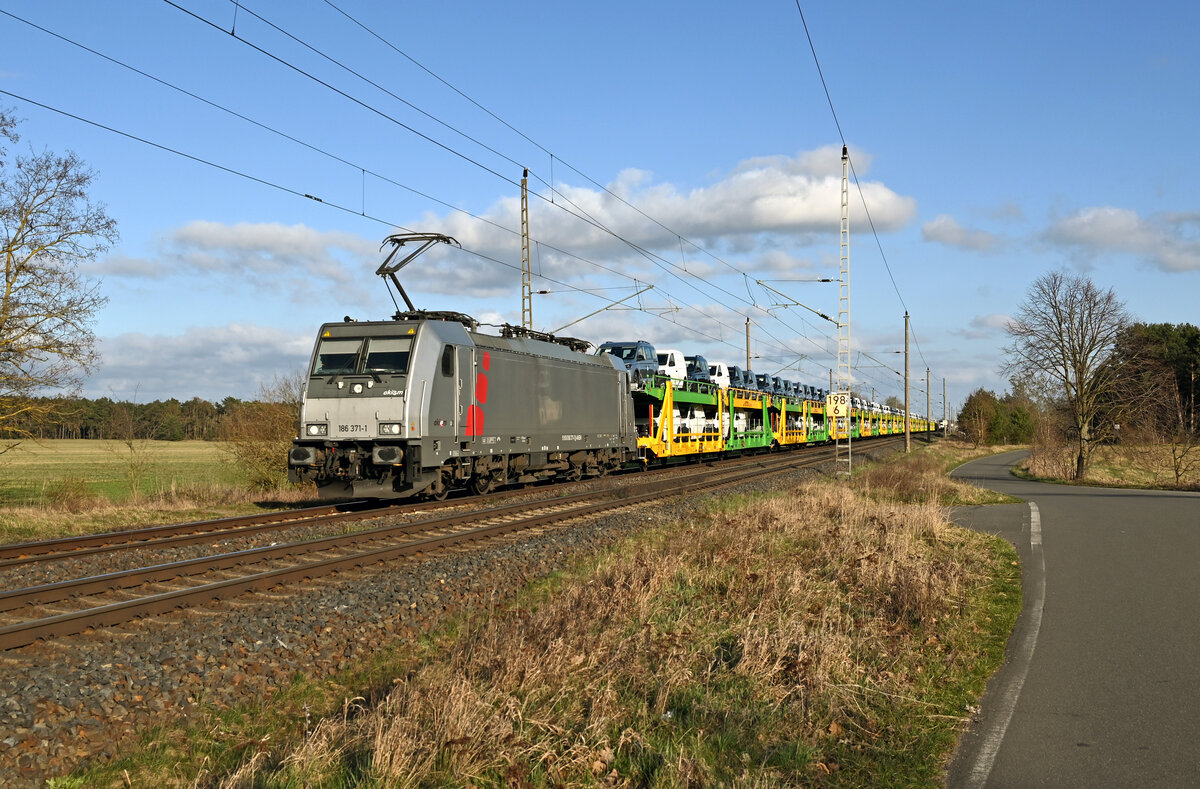 186 104 von BLS-Cargo kommt aus Richtung Köln,Aachen-Hbf und fährt durch Aachen-Schanz mit einem LKW-Zug aus Novara(I) nachZeebrugge(B) und fährt in Richtung Aachen-West.
