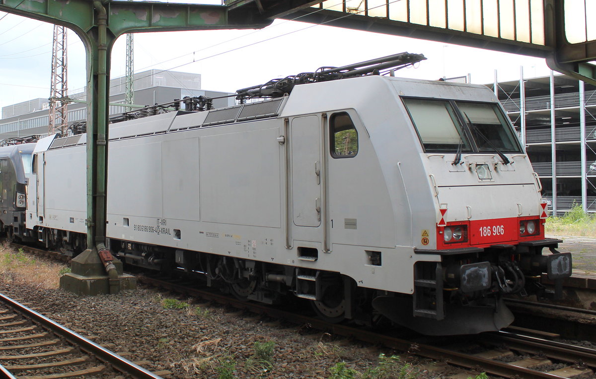 Lokportrait der Crossrail 186 906-4, welche am 08.06.19 mit zwei weiteren Loks als Lokzug am Duisburger Hauptbahnhof stand.