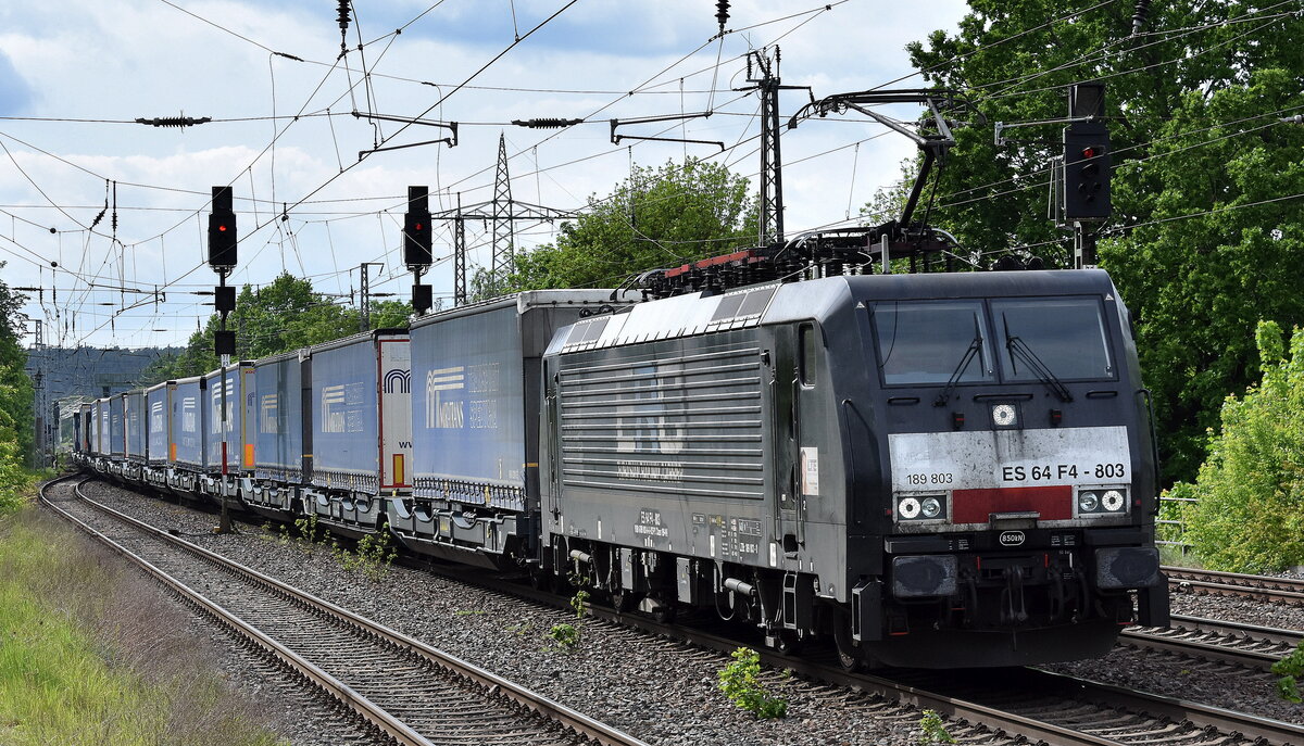 LTE Polska Sp. z o.o., Gdynia [D] mit der "ES 64 F4-803" [NVR-Nummer: 91 80 6189 803-0 D-DISPO] und KLV-Zug Richtung Polen am 07.05.24 Höhe Bahnhof Saarmund. Lothar Stöckmann
