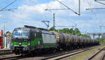 PKP CARGO INTERNATIONAL a.s., Ostrava [CZ] mit der Akiem Lok "186 351-3" (NVR-Nummer: 91 80 6186 351-3 D-AKIEM] und KLV-Zug am 02.06.22 Höhe Bf. Niederndodeleben (Nähe Magdeburg).