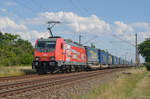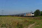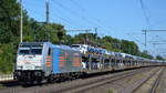 HSL Logistik GmbH, Hamburg [D] mit der Railpool Lok "186 551" [NVR-Nummer: 91 80 6186 551-8 D-Rpool] und einem PKW-Transportzug (fabrikneue AUDI Modelle) am 24.08.22 Durchfahrt Bahnhof Niederndodeleben.