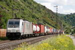 Lineas 186 385 am 13.05.2024 mit einem Containerzug bei Braubach