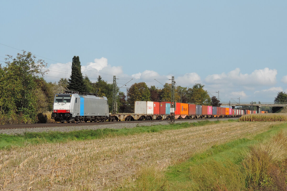 Hugsweier - 30. September 2023 : 186 496 mit einem KLV in Richtung Süden unterwegs.