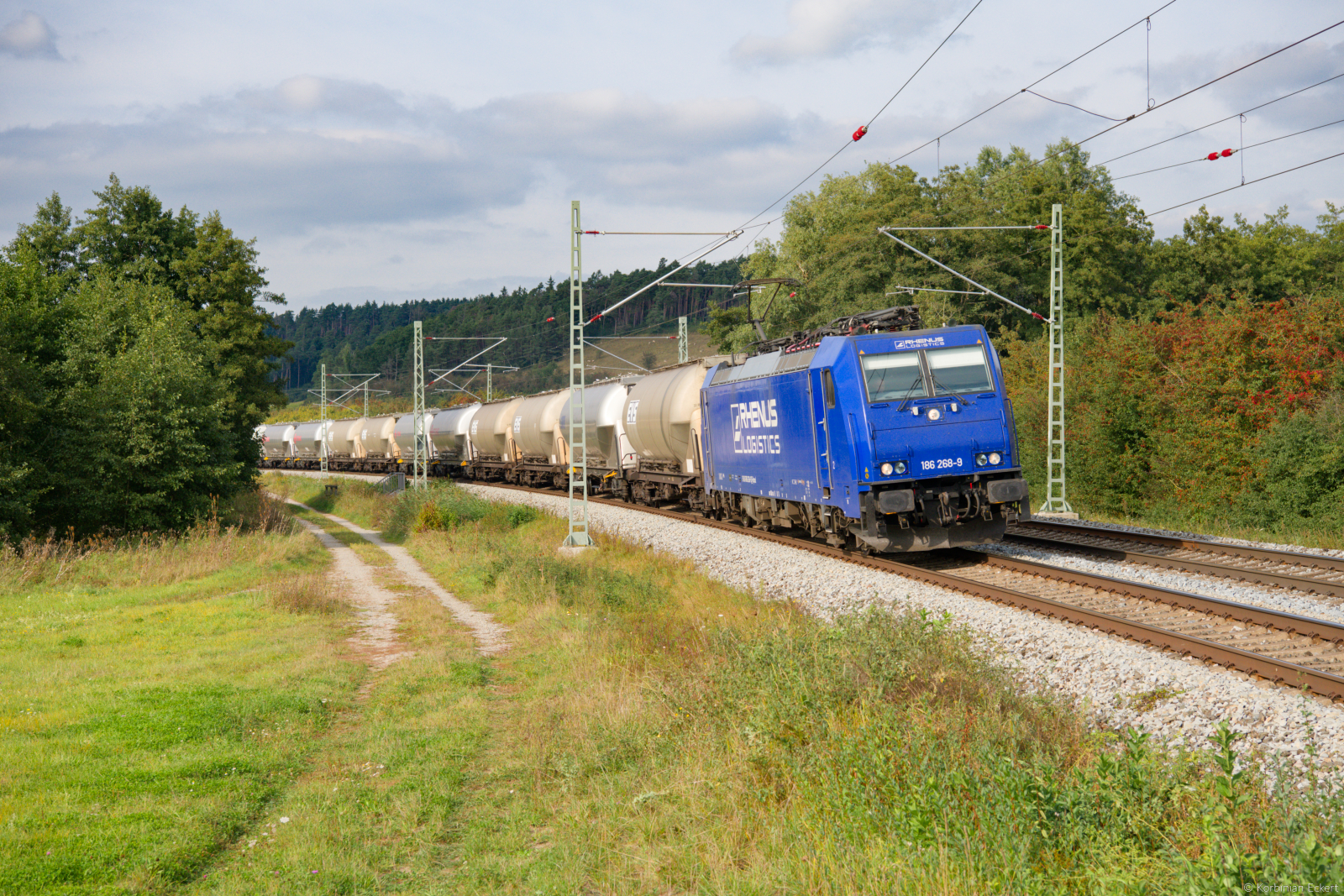Heitersheim - 20. September 2024 : Rhenus 186 269 mit einem Kombi nach Basel unterwegs.