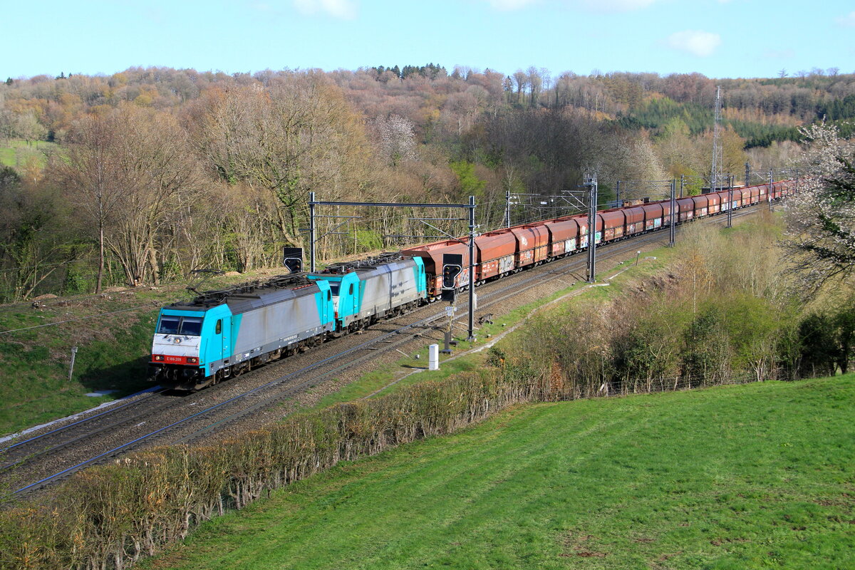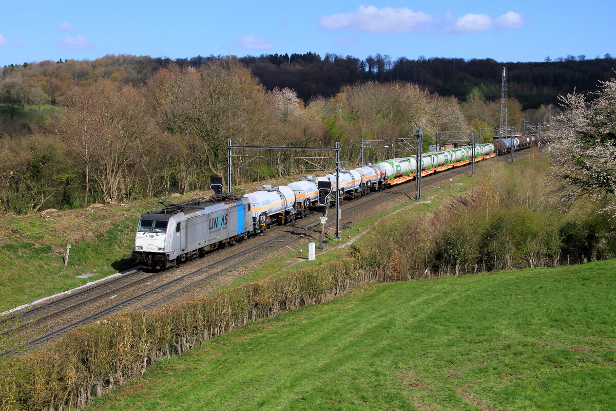 186 324-0 befördert die Fuhre in Richtung Forbach.