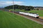 Cobra-Lok 2820 (186 212) rollt mit einem langen Kesselwagenzug durch die Ortschaft Hoeselt in Richtung Hasselt auf der Linie 35. Aufgenommen am 23/07/2015.