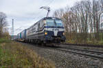 187 505 der akiem schleppte am 04.12.25 für Metrans einen Containerzug durch Braschwitz Richtung Halle(S). Ziel war das Containerterminal in Leipzig-Wahren.