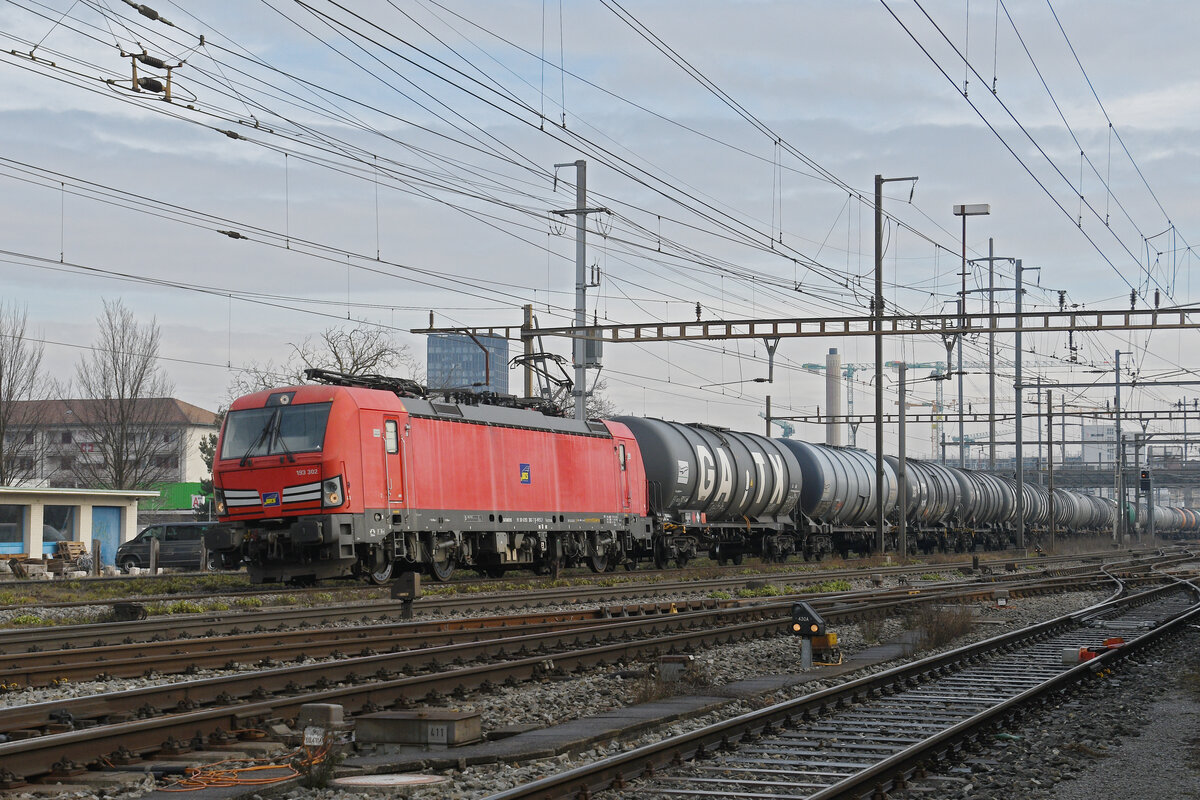 Siemens Vectron 193 302-7 im Dienste der WRS durchfährt am 22.01.2026 den Bahnhof Pratteln.