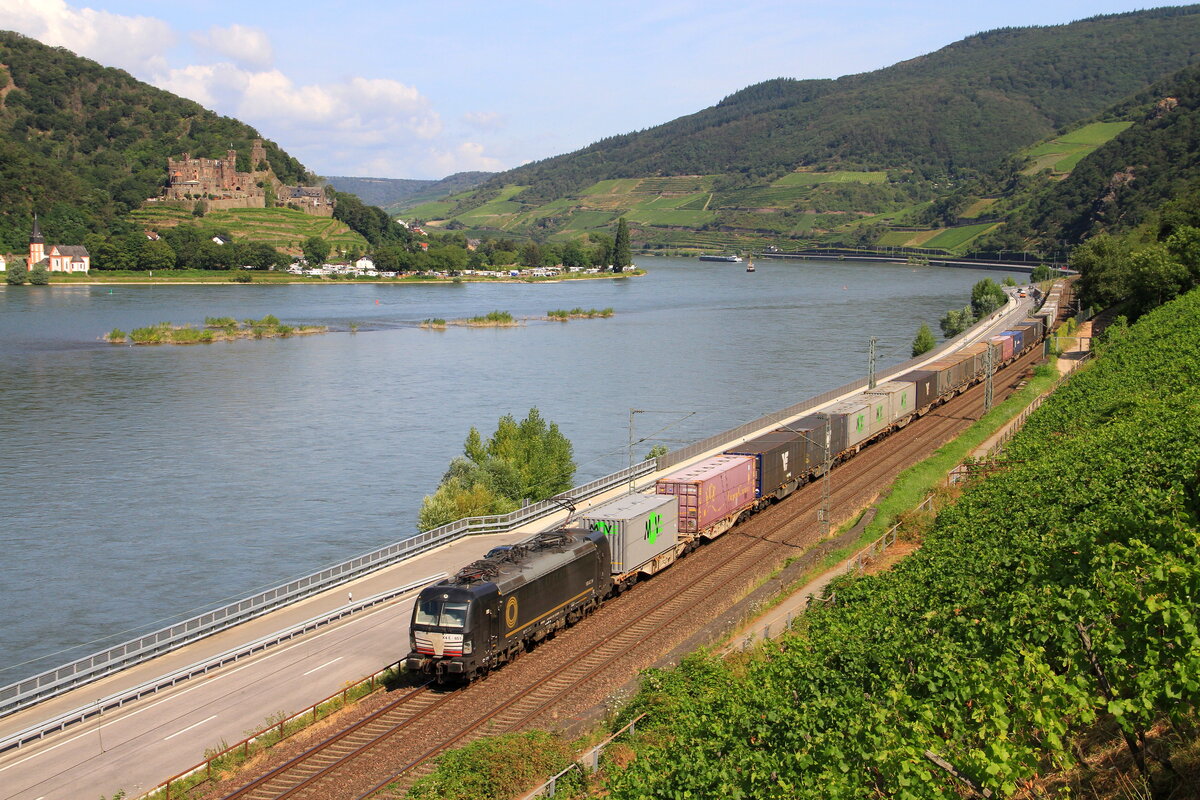Die von RTB Cargo eingesetzte ELL 193 249 zieht einen ARS-Altmann-Autotransportzug am 15.03.18 bei Diepholz in Richtung Osnabrück.