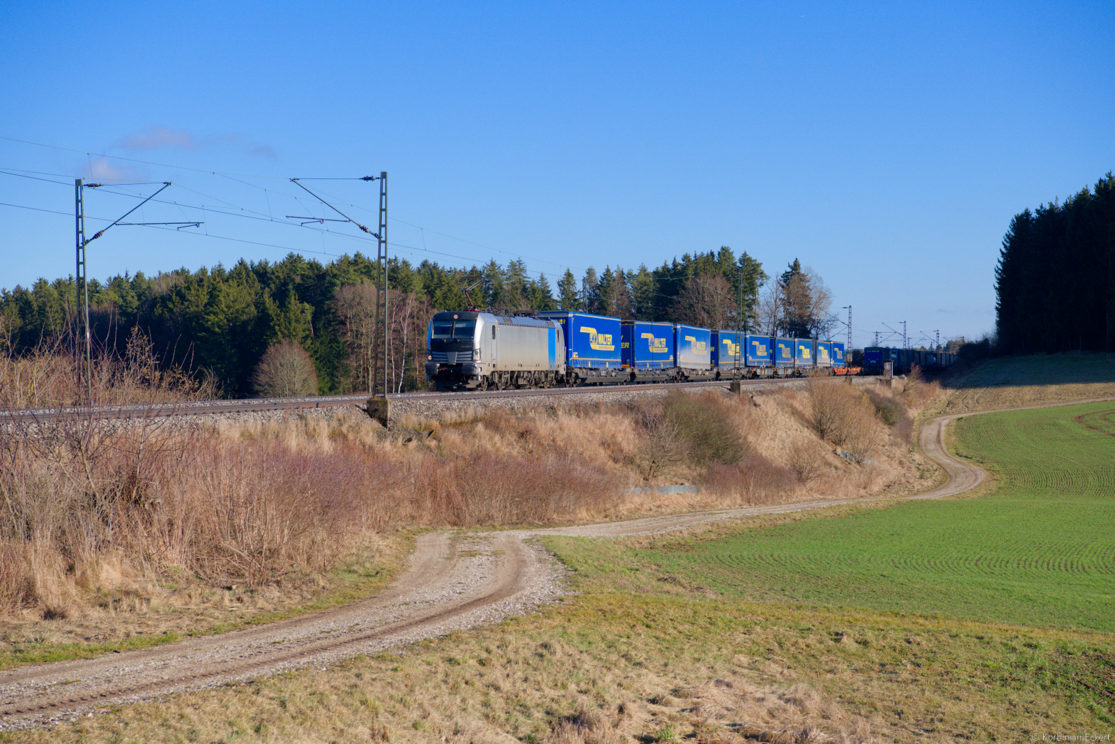 193 275 ELL/TXL "We love to connect" mit einem LKW-Walter KLV-Zug bei Edlhausen Richtung Regensburg, 22.11.2018