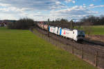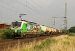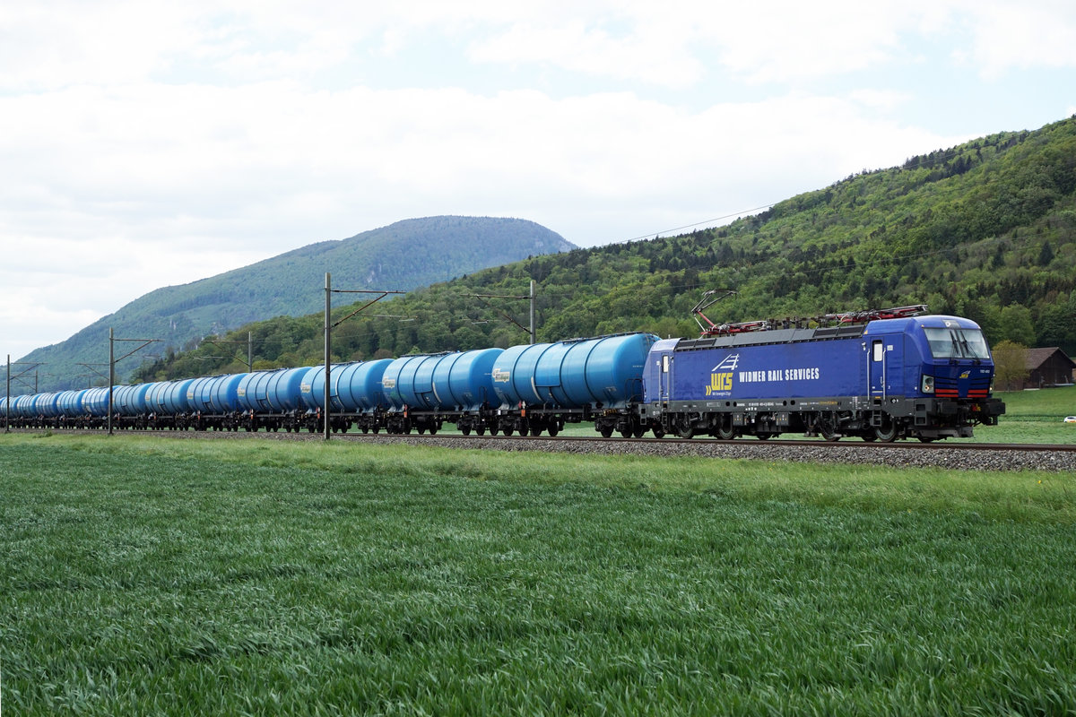 WRS Kesselwagenzug auf der Fahrt in Richtung Osten mit der 193 493 zwischen Oensingen und Oberbuchsiten am 13. Mai 2019.