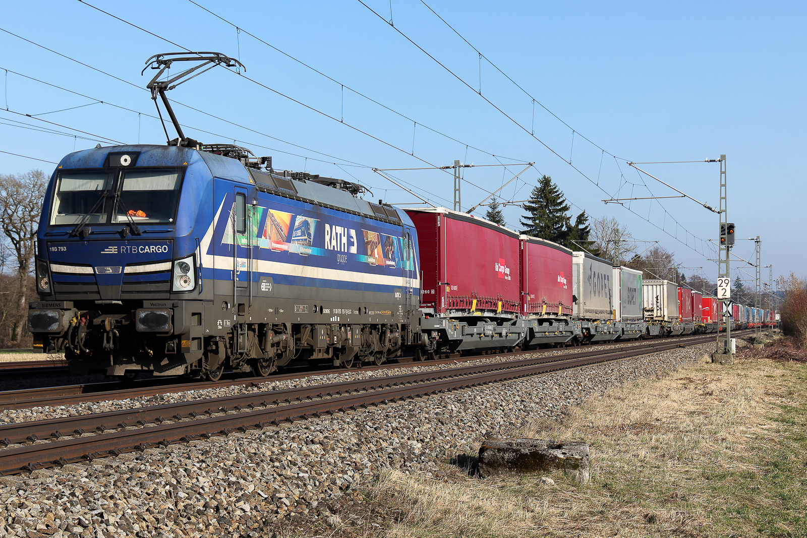 RTB CARGO GmbH, Aachen [D] mit der  193 793  [NVR-Nummer: 91 80 6193 793-7 D-ELOC] mit Lkw Aufliegern am 5.3.26 bei Eglharting.
