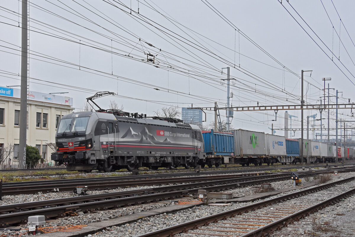 Siemens Vectron 193 541-0 durchfährt am 20.02.2026 den Bahnhof Pratteln.
